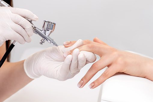 Airbrush A method of painting or colouring using compressed air through a piece of equipment, called an airbrush, that caries a low viscosity paint medium. These together sprays a fine film of the paint onto the surface to be coloured