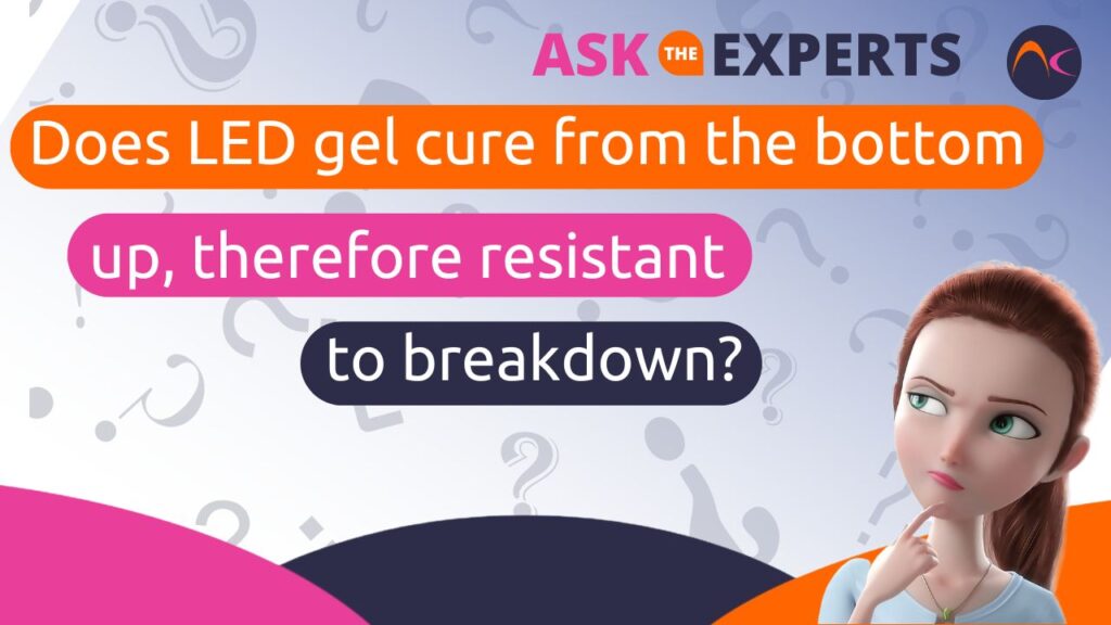 Contrary to the educator’s assertion, there is no scientific basis to support the claim that LED gel cures from the bottom up, conferring greater resistance to breakdown. The notion of bottom-up curing implies a directional curing process that begins at the base of the gel and progresses upwards. However, the crosslinking reaction initiated by UV light occurs uniformly throughout the gel layer, rather than proceeding directionally from top to bottom or vice versa. Therefore, the concept of bottom-up curing lacks substantiation within the scientific framework governing gel curing processes.